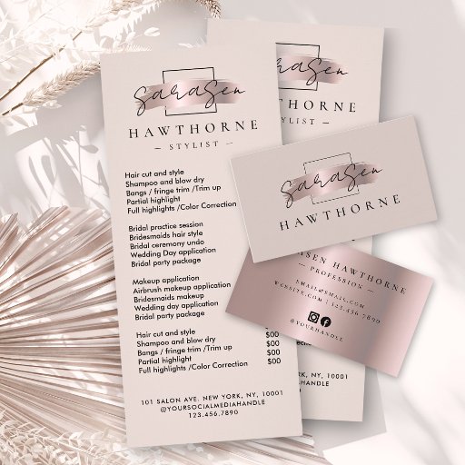 werkszeugnisberuflichdienstleistungsbeleggutscheinrotgoldpink neutral beigetrendy handgeschriebene skripttypografiemodern minimalistisch elegantsalon wellness center boutiquemaskenbildner oder haarstylistin