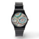 Die elegante Armbanduhr mit atemberaubend türkisfarbenem Aqua-Blau, Weiß, Rosa und goldfarbenem Marmorwellenmuster verleiht dem Ganzen ein angenehmes Ambiente. Diese Uhr ist ein ideales Geschenk für sich selbst oder jemanden, der etwas Besonderes ist, und sie dient als schöne Ergänzung zu Ihrer alltäglichen Mode.