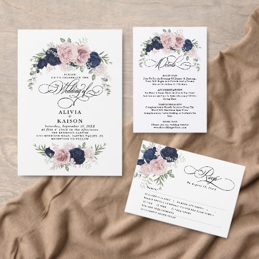 Navy Blue Blush Floral Calligraphy ChicDesignt von Zubeada Begum