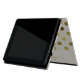 Elegant und stilvoll ist dieses iPad Folio Gehäuse mit goldfarbenen Polka-Punkten in einem schicken Leinenlook. Personalisieren Sie den goldbraunen Text, der sich an der Vorderkante entlang läuft, für sich selbst oder als eine schöne Geschenkidee.