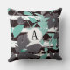 Ein trendiger, monogrammatischer Kissen mit grauem und minzem Blumenmuster und schwarzen Streifen. Ein stilvolles Blumenmuster, das Sie persönlich gestalten können! Dieses Design hat bedrückte schwarz-weiße Streifen über bedruckt mit einem schönen Blumenmuster. Das Kissen mit dem Einstieg individuell anpassen. Design von Jenn's Emporium.