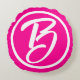 Chic Hot Pink White Monogram Script Rundes Kissen
