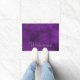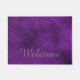 Elegante Türmatte lila gemacht, mit Grafiken eines gemeißelten Blumenbildes geblüht. Lavender farbigen Text liest Welcome und kann personalisiert sein, um zu lesen, was Sie gewollt.