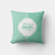 Ein elegantes, zweifarbiges Minzgrün-Kissen mit einem Hahnentrittmuster in senkrechten Streifen. Dieses zeitgenössische Design in einem trendigen Pastellgrün personalisieren, indem man den Namen und die Monogramm-Initialen der modischen jungen Frau hinzufügt.