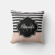 Chic Pink und Black Wide Stripes Name und Monogram Kissen