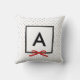 Chic Monogramm-Kissen mit einem schwarzen, runden Quadrat mit einem roten Band und einem schwarz-weißen Polka-Dotmuster. Es macht großartige Geschenke für Familie und Freunde oder für sich selbst zu dekorieren Ihre Zuhause oder Schlafzimmer.