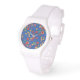 Eine schicke White Sporty Wristwatch mit einem hübschen Blumenmuster im Mini-Druck auf französischem Navy Blue Hintergrund. Dieses Muster ist Teil der Posh & Painterly 'Granny Print' Kollektion und kann leicht an jede Armbanduhr angepasst werden.