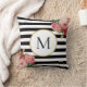 Chic Schwarz-weiß Strip Retro Floral Monogramm Kissen