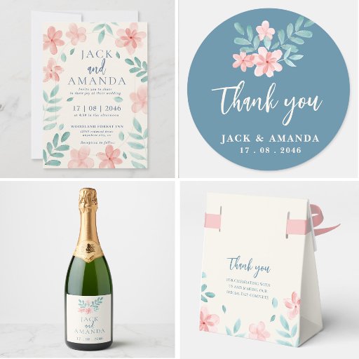 Chic Watercolor Pink Blumenzehen Speichern Sie das Einladung