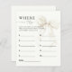 Stilvolle, weiße Bogen "Where Were they"-Brautparty-Spielkarte mit eleganter Schrift-Typografie auf einem knackigen, minimalen Hintergrund. Ideal, um einem Brautparty, einem Polterabend oder einem Junggeselinnen-Abschied einen unterhaltsamen und interaktiven Moment zu verleihen, besonders für Bugs- oder Schwarzweißfeiern. Die Gäste schätzen Orte aus den Fotos des Paares, die Lachen und Erinnerungen erzeugen. Koordiniert mit passenden Einladungen, Dekorationen und Schreibwaren im gleichen schicken weißen Bogen-Design.