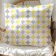 Niedliche Präppy-Diamond-Muster Kissen. Dieses elegante Kissen für Ihre eigene Wohngestaltung oder für ein hübsches Hauswärmeschenk. Schönes gelb-graues Design.