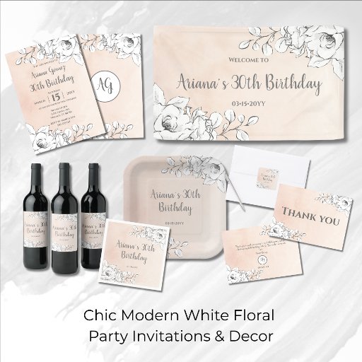 Chic Modern White Floral Party Invitations & DecorDesignt von Amazing Beautiful Creative Designs