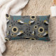 Muster mit Vögeln, Blume, Äste mit Beeren auf grauem Kissen. Eine schicke Hülle mit grauem Hintergrund mit goldenen und schwarzen Vögeln, aquamarinen Akzenten und Blume in stilisierten Kunstmustern. Design aus Jenns Emporium.