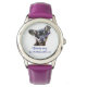Uhr, Kinderuhr aus Edelstahluhr mit lila Lederarmband
