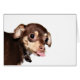 Chihuahua mit einer Einstellung, Zunge heraus, als ob in einer Bronx Grußkarte ein Platz für Text