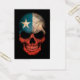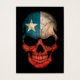 Dieses einzigartige Design zeichnet sich durch die Fahne des Chilen aus, der auf einem aggressiven Schädel gemalt wurde. Die chilenischen Farben bedecken den gesamten Schädel mit großen Rissen, die über den Knochen schlängeln. Dieses dunkle Muster ist eine einzigartige Möglichkeit, Ihren Patriotismus zu zeigen.