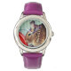 Uhr, Kinderuhr aus Edelstahluhr mit lila Lederarmband