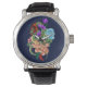 Chinesische Dragon Navy Blue Blumen Armbanduhr
