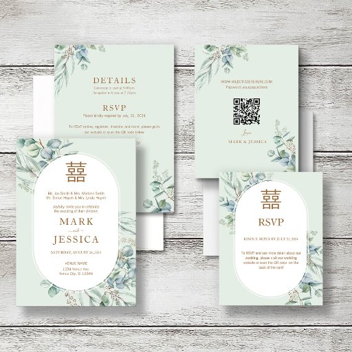 Chinesische Eukalyptus-Hochzeit des doppelten Glüc Einladung