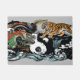 Grüner chinesischer asiatischer Ostdrache gegen Tiger in der Landschaft mit Wasserfall, Felsen und Wasserwellen. Zwei geistige Geschöpfe in klassischem Feng Shui, das Yin Yang darstellt. Illustration