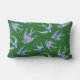 "Chinoiserie Chic Floral Birds Blue Green Swallows Lumbar Pillow." Moderne Farbpalette von Frühlinggrün mit klassisch blau-weiß asiatischen Töpferwaren. Neu gestrichene Kunstwerke von Swallow-Vögeln in einem "gebrochenen Plattentöpfe-Stil" mit stilisierten Blume und Blätter in antiken chinesischen Mustern in einem Mosaik-Design für einen Vintagen, maximalistischen oder modernen Stil der Wohngestaltung. Kunst des international anerkannten und lizenzierten Künstlers Audrey Jeanne Roberts, Urheberrecht.
