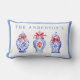 Dieses schicke Lumbalkissen verfügt über 3 verschiedene Ingwergläser mit roten Bögen. Der Rand um die Karte ist ein blauer Rahmen. Sie können mit Ihrem Namen personalisieren. Auf der Rückseite ist ein Bambusrohr.