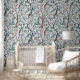 Chinoiserie Peony Blume, Bäume & Vögel Light Grau Tapete