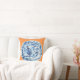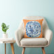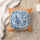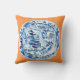 Dieses ist ein Kissen, das eine klassische blaue und weiße chinesische Platte auf einem Mandarinehintergrund kennzeichnet, eine ursprüngliche Gouache/eine Tintenmalerei vom Künstler Anne Harwell. Entwurf ist auf Front und Rückseite.