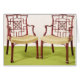 Chippendale Mahagonibaum, der Stühle im chinesischen Geschmack, in den Spitzenschienen übergestiegen durch einen ducal Coronet und im griffon Wappen, c.1760 gelegen am Wien Museum Karlsplatz, Wien, Österreich speist.