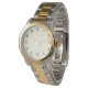 Diese Armbanduhr für Chiropraktoren ist mit einem Chiropraktikemblem in Metallic-Optik mit dem Angel-Emblem 12, 3, 6 und 9'Uhr auf hellbeigem Hintergrund ausgestattet. Ändern Sie den Hintergrund in eine beliebige Farbe.