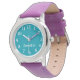 This fun modern wrist watch for a child can be customized as you wish. You can CHOOSE YOUR OWN COLOR to replace the background on the watch face and you can make the text or name say whatever you want. Or keep my stylish turquoise design. All Rights Reserved © 2025 Alan & Marcia Socolik.