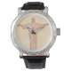 Uhr, Vintage Männeruhr mit schwarzem Lederarmband