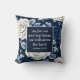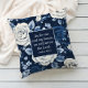 Schöne staubige blaue und weiße Rosen auf marineblau Kissen, mit dem Bibelverse Joshua 24:15 auf der einen Seite: "Was mich und mein Haus betrifft, werden wir dem Herrn dienen." Text ist vollständig anpassbar, also fügen Sie Ihren eigenen Lieblingsvers oder Text hinzu.