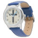 Kinderuhr aus Edelstahl mit blauem Lederarmband