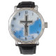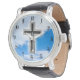 Christliches Kreuz im blauen Himmelshintergrund Armbanduhr