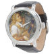 Uhr, Vintage Männeruhr mit schwarzem Lederarmband
