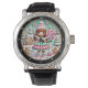Uhr, Vintage Männeruhr mit schwarzem Lederarmband