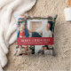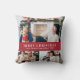 Weihnachts Foto Kissen werfen. Dieses niedliche und einzigartige Nusscracker Frohe Weihnachten oder Happy Holidays werfen Kissen bietet schöne handgemalte Wasserfarbe Muskeln Spielzeug rund um einen dekorierten Weihnachtsbaum mit Text und vier Fotos für die Personalisierung auf einem roten Hintergrund. Finden Sie passende Artikel in der WeihnachtsnachtsNutcracker Kollektion.