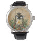 Uhr, Vintage Männeruhr mit schwarzem Lederarmband