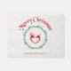 Eleganter weißer Blumendamast mit grünen und roten Heiligen Beeren Weihnachtskranz und Hirsch in Herzform