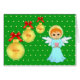 Kleiner Engel und drei Weihnachtsbälle mit Liebe, Freude und Ruhe Blank Card. Engel-Design auf grünem, sternigem Hintergrund.