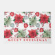 Es gibt schöne heilige Beeren, rote und grüne Poinsettien und herzförmige Ornamente mit Schneeflocken.
