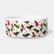 Niedliche Weihnachten Rottweiler Hunde in festlichen Urlaubssoutien. Rottweiler mit schwarzen und bräunlichen Mänteln halten Süßspeisen, tragen Weihnachtsmannmützen, Geweihe, Pullover mit verstreuten Ziergegenständen.