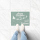 Zeigen Sie, wie sehr Sie an den Zauber von Weihnachten und Weihnachtsmann glauben, mit dieser Weihnachtsmatte, die die Silhouette des Schlittens des Weihnachtsmannes in Weiß mit seinen Rentieren zeigt, die auf einem Sternenpfad fliegen. Die Titelschrift auf oben liest Frohe Weihnachten in weißer handgeschriebener Schrift. Der Text ist leicht an Ihre Wünsche, das Jahr, den Familiennamen oder den Firmennamen anzupassen. Diese Türmatte ist die perfekte Weihnachtsdekoration für Ihre Zuhause