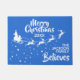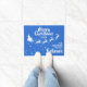 Zeigen Sie, wie sehr Sie an den Zauber von Weihnachten und Weihnachtsmann glauben, mit dieser Weihnachtsmatte, die die Silhouette des Schlittens des Weihnachtsmannes in Weiß mit seinen Rentieren zeigt, die auf einem Sternenpfad fliegen. Die Titelschrift auf oben liest Frohe Weihnachten in weißer handgeschriebener Schrift. Der Text ist leicht an Ihre Wünsche, das Jahr, den Familiennamen oder den Firmennamen anzupassen. Diese Türmatte ist die perfekte Weihnachtsdekoration für Ihre Zuhause