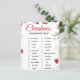 Festive Christmas scavenger hunt checklist artwork with a clean white background and charming holiday illustrations. Designed with elegant red cursive typography, surrounded by cozy winter elements like evergreen branches, snowflakes, houses, trees, a snowman, and warm holiday details. The balanced layout creates a joyful seasonal atmosphere perfect for family-friendly celebrations. All text and images are fully editable, allowing easy changes to match any style or preference.
