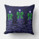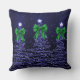 Christmas Sparkling Trees Navy Faux Green Bow Kissen