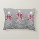 Christmas Sparkling Trees Silver Faux Pink Bow Dekokissen