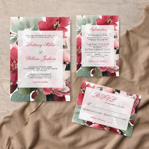 Christmas wedding theme featuring elegant hand-painted red and green flowers with soft leafy accents, this design brings a romantic and elagant vibe perfect for Christmas wedding celebrations. Customise the text to fit your event details and make it all yours.