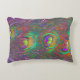 Dieses phantastische Kissen bietet ein festliches Foto einiger Pfauenfedern, die mit Makrofotografie aufgenommen wurden. Um die Details hervorzuheben, wurden künstliche Farbtechniken eingesetzt. Das Ergebnis ist ein lila Töneffekt, bei dem die Augenfugen Rot und Grün zeigen.